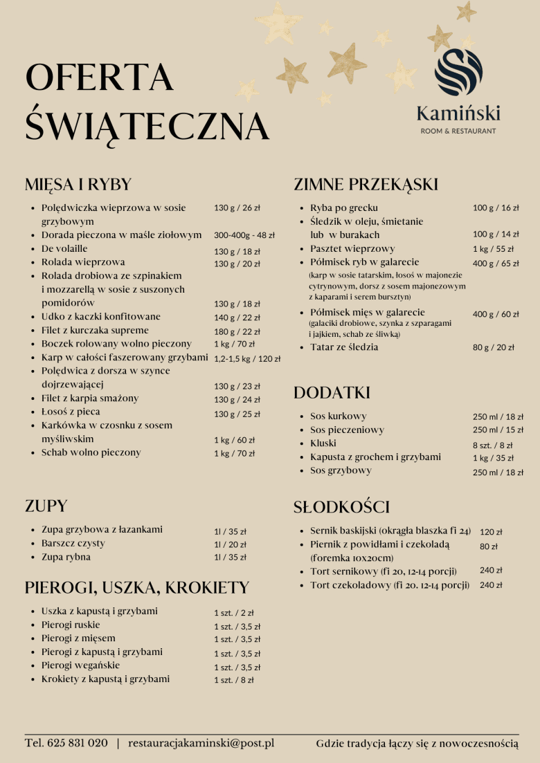 Każde danie powstaje z najwyższej jakości składników i jest starannie przygotowywane przez nasz zespół pod czujnym okiem Szefa Kuchni. Gwarantujemy niezapomniane smaki, które wprowadzą Was w świąteczny nastrój.