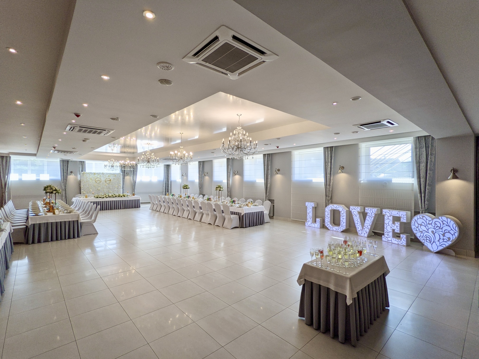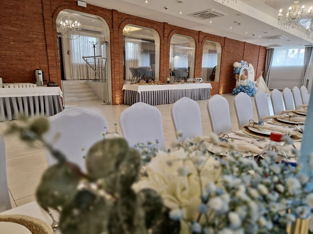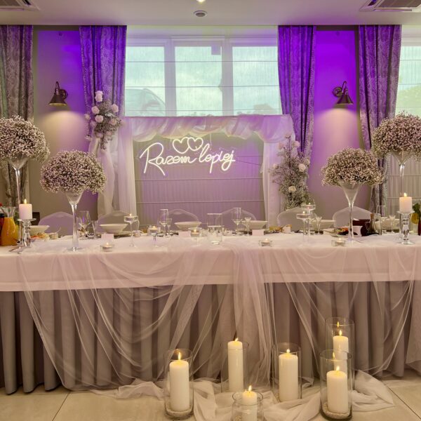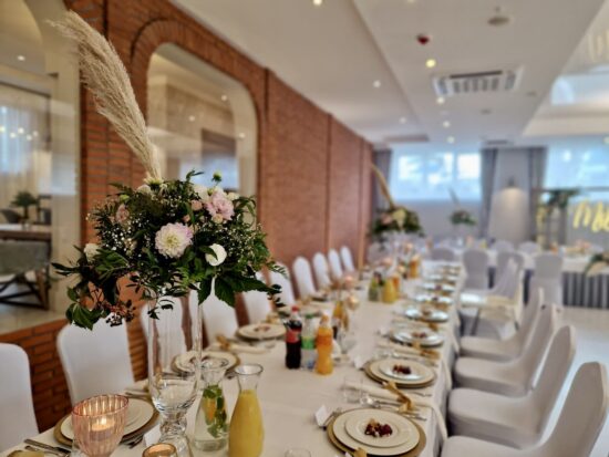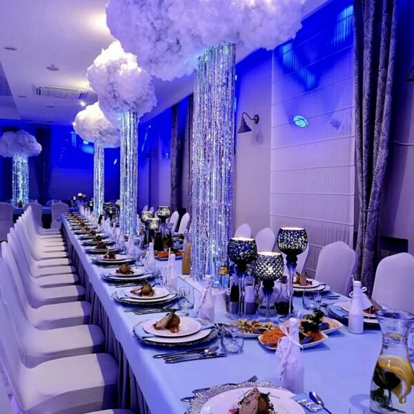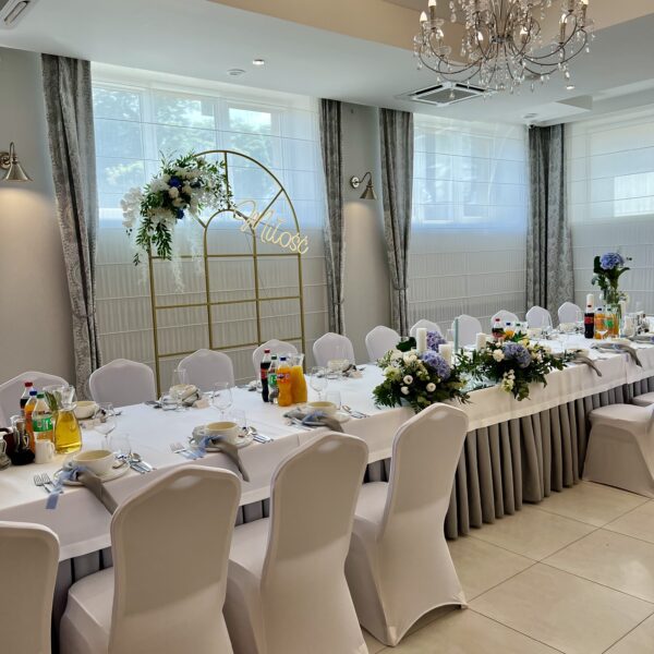W naszej sali mamy dużą przestrzeń i możliwości na różnego rodzaju dekoracje i atrakcje. Ściany z balonów, prosecco bar, fotobudka – co tylko sobie zamarzycie. Przystrojona sala zawsze robi ogromne wrażenie.