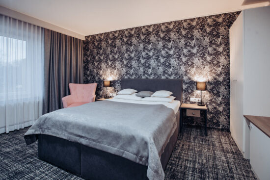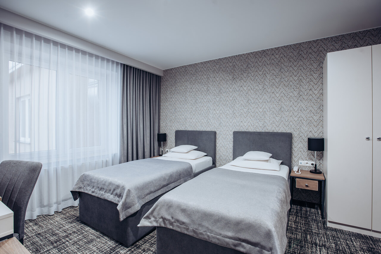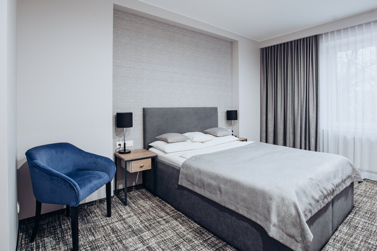 Oferujemy pokoje 1-, 2-, 3- i 4-osobowe z łazienką, zestawem do parzenia kawy i herbaty oraz śniadaniem w formie bufetu i możliwością zamówienia lunch boxu. Doba hotelowa rozpoczyna się o 14:00, a wymeldowanie jest do 12:00.
