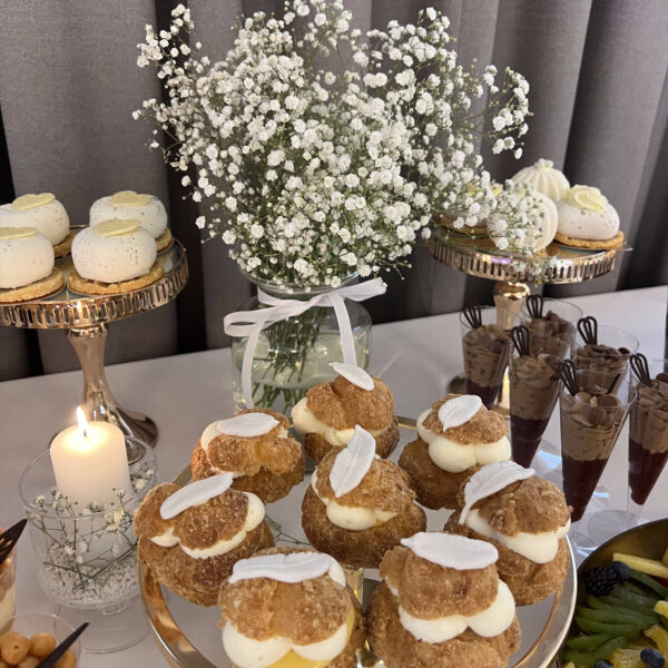 Nasze słodkie stoły i torty to małe dzieła sztuki – tworzone z pasją, wyłącznie z najlepszych składników. Wszystkie wypieki powstają w naszej własnej pracowni, dzięki czemu możemy zagwarantować ich najwyższą jakość i świeżość. Niezależnie od okazji, zadbamy o to, aby każdy deser zachwycał zarówno smakiem, jak i wyglądem.